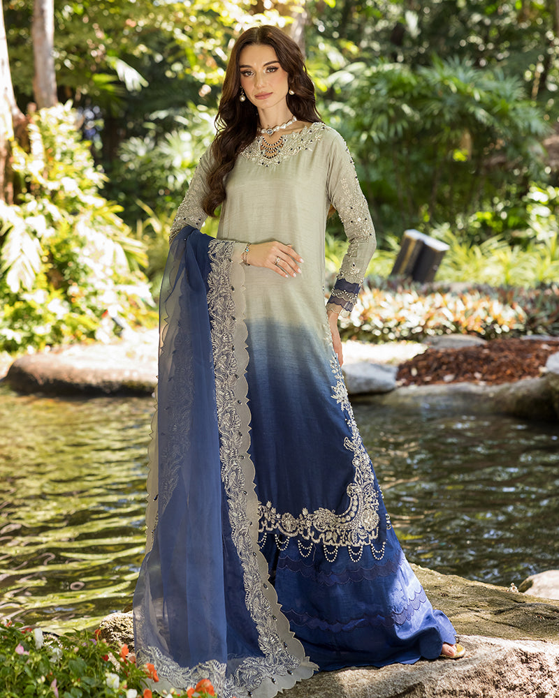 Korean raw silk shirt, intricate tilla thread work, adorned with shimmering pearls and sparkling crystal embellishment naqshi and dabka work