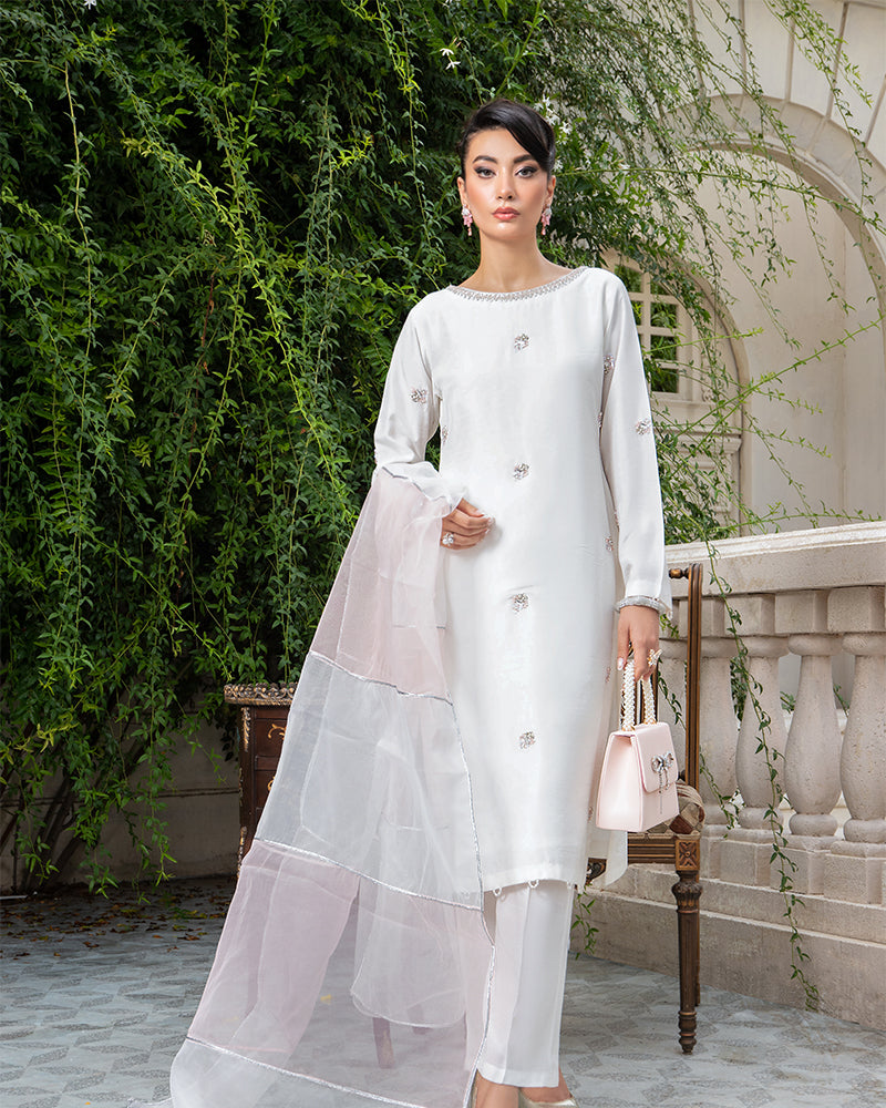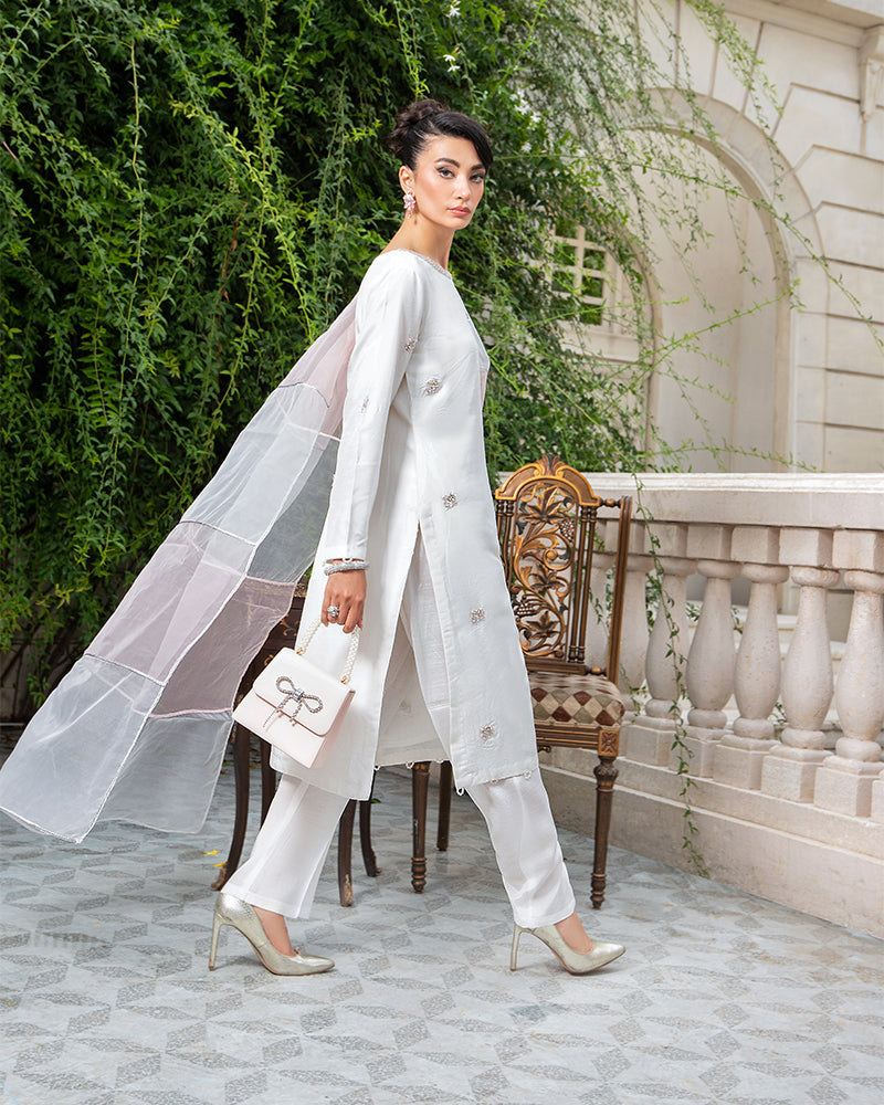 Korean silk shirt beautifully adorned with handcrafted adda work