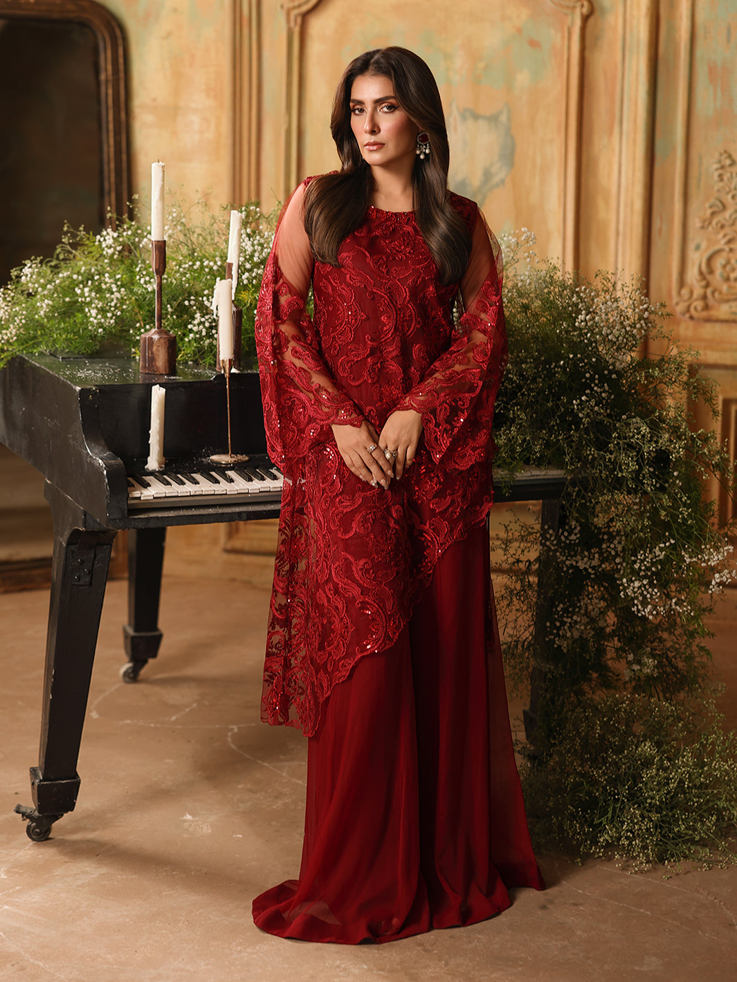 Net drop corner shirt featuring exquisite sequin embroidery, handcrafted adda work, and adorned with crystals, stones, and naqshi detailing.