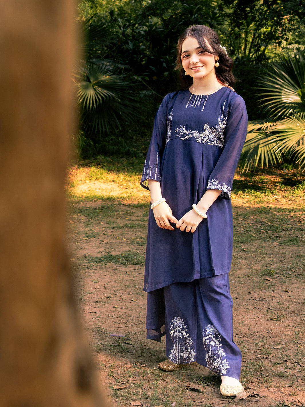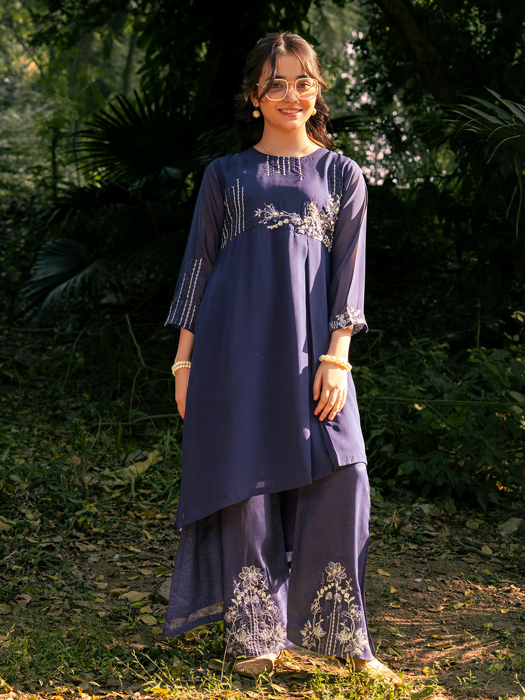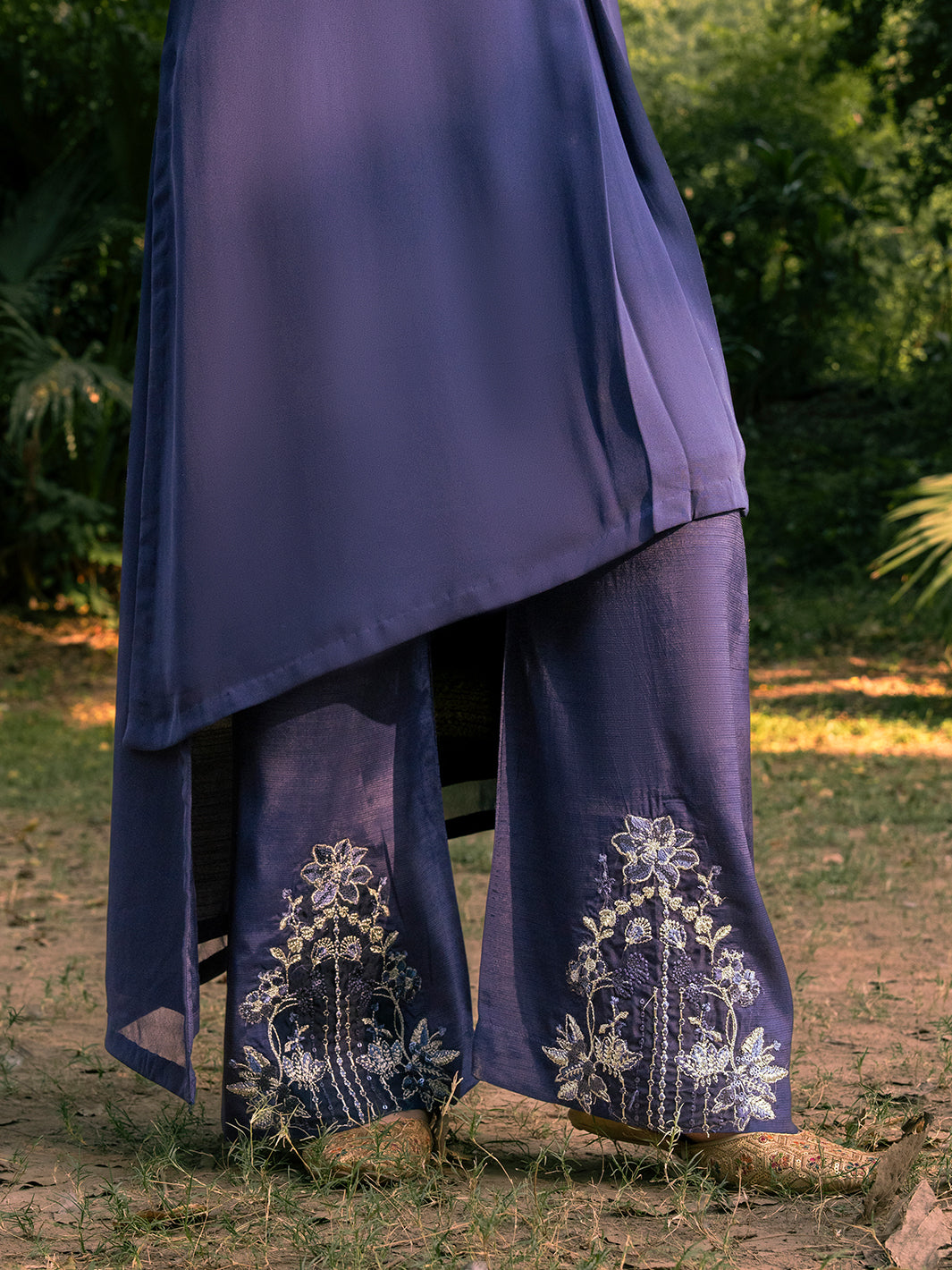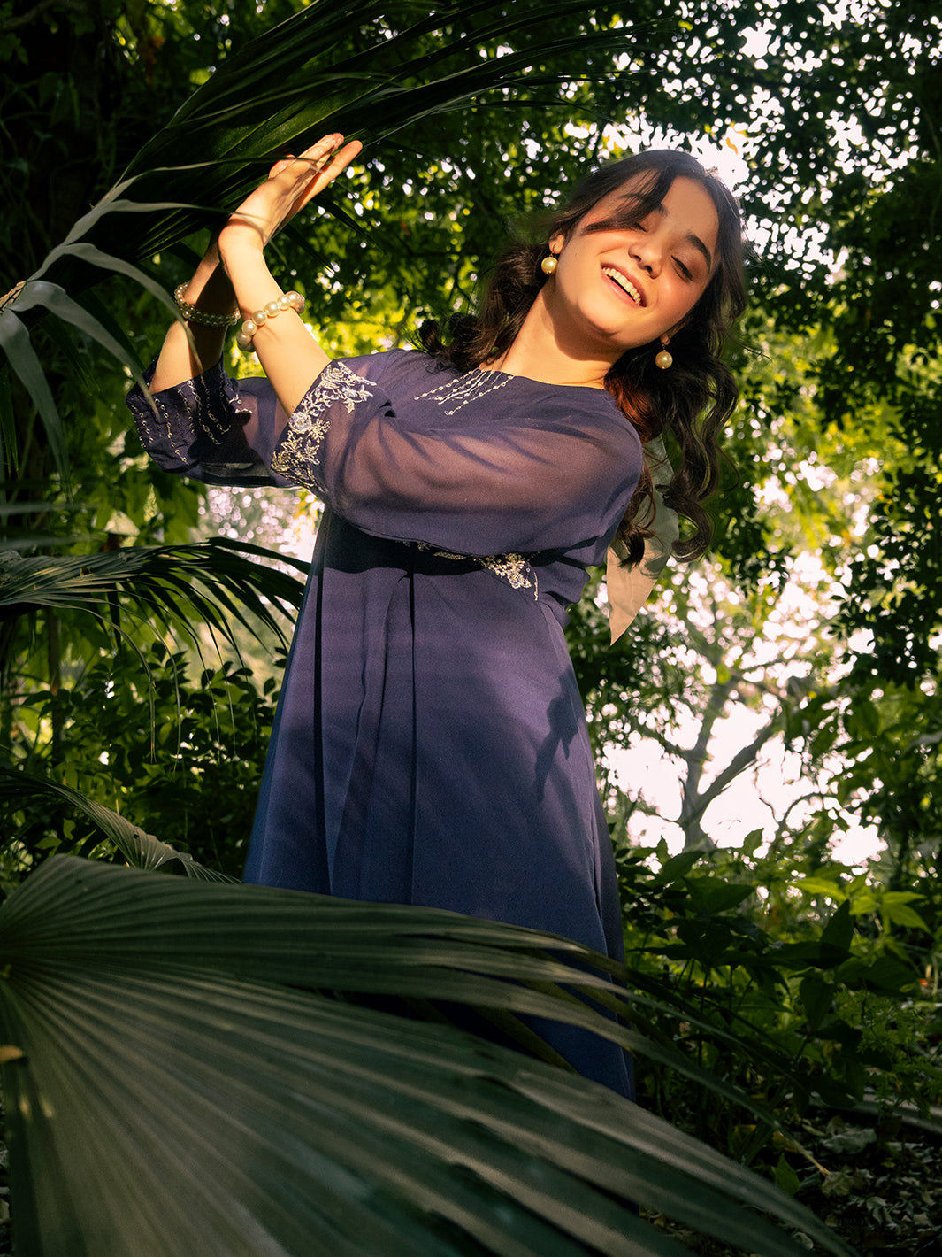 Chiffon back-tail shirt featuring exquisite sequin embroidery, meticulously handcrafted with adda work, naqshi, and dabka detailing.