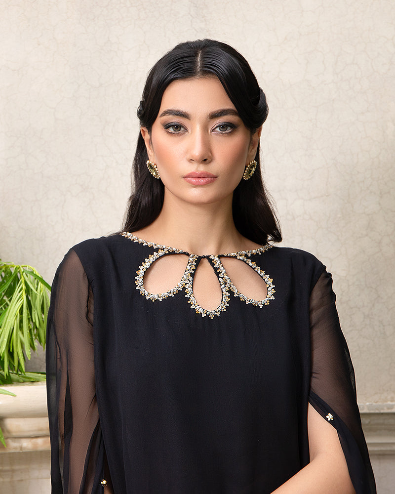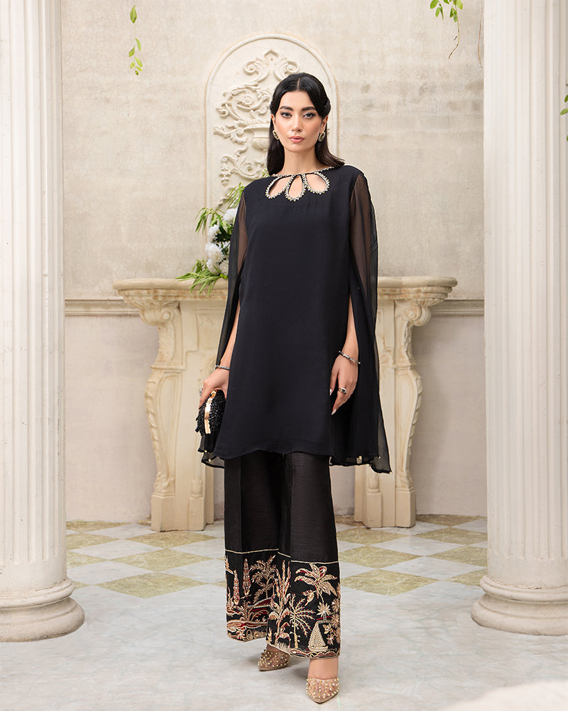 Luxurious raw silk bell-bottom trousers, also enhanced with handcrafted adda work